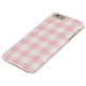 Modern gingham checkered pattern iPhone 6 Plus case in Pale Pink. Strong, impact resistant Case-Mate protective gingham check design iPhone 6 Plus cover. Allows access to all ports, sensors and controls. For iPhone 6 and other iPhone, iPad or Samsung Galaxy smartphone models select the case that you require from the Form Factor tab.