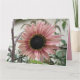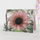 This get well soon card features a beautiful photograph of a pale pink sunflower. The sunflower is naturally pink and the petals have a pale pink outer ring and a darker pink inner ring. The middle where the seeds are is black. This photograph was taken in a garden.