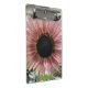This awesome mini clipboard features a beautiful photograph of a pale pink sunflower. The sunflower is naturally pink and the petals have a pale pink outer ring and a darker pink inner ring. The middle where the seeds are is black. This photograph was taken in a garden.
