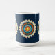 Customizable! Add text, change background color or transfer to another product! A pretty floral mandala in pale yellow and orange with blue accents, digitally created.