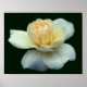 Lovely pale yellow rose coming into bloom with dew drops. Flower photography by Susan.