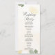 The program's front cover showcases a charming arrangement of yellow roses and greenery, creating a harmonious blend of colors that embodies the beauty of nature and the blossoming romance between you and your partner. The careful placement of these flowers adds a touch of sophistication and grace to the design, enhancing the overall aesthetic appeal.