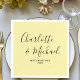 These elegant Pale Yellow Script Minimalist Wedding Napkins are the perfect addition to your special day. Each napkin is customized with the names of the bride and groom and the date of the wedding, creating a personalized touch that your guests will love.