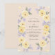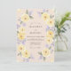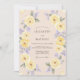 This design features a delicate arrangement of pale yellow roses and soft purple lavender sprigs set against a warm cream backdrop. The watercolor aesthetic creates a romantic and airy mood perfect for a seasonal spring event. Muted green leaves add a natural touch to the botanical display, while the soft color palette evokes a sense of timeless elegance.