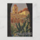 A lovely view of ancient Palermo, buildings and lush vegetation, glimpsed through an archway on this vintage travel poster postcard.