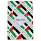 The Palestinian Flag is three horizontal stripes of black, white and green with a red triangle on the left side. In this design, the flag features the word PALESTINE, underneath, in the colors of the flag. It is tiled for artistic effect. A white space of squiggly squares holds a place for your name to add a personalized touch. If you wish to create a customized gift, just add someone else's name.