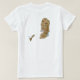 The front of this t-shirt boldly displays the Palestinian flag with its distinctive red triangle with black, white and green bands to the right. This is matched at the back by an attractive map of Palestine.
