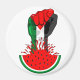 Palestine Flag on Revolution Fist Symbol of freedom coming out from a Watermelon. In occupied Palestine, watermelon is a symbol of resistance. With its colors mirroring the Palestinian flag, the fruit can be seen from the stone walls of Gaza to the galleries of Ramallah, hinting at the political history of a cherished summer fruit. As the Israeli occupiers supremacy did not allow the Palestinians to expose their own Red white black and green original Flag.