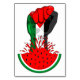 Palestine Flag on Revolution Fist Symbol of freedom coming out from a Watermelon. In occupied Palestine, watermelon is a symbol of resistance. With its colors mirroring the Palestinian flag, the fruit can be seen from the stone walls of Gaza to the galleries of Ramallah, hinting at the political history of a cherished summer fruit. As the Israeli occupiers supremacy did not allow the Palestinians to expose their own Red white black and green original Flag.