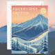 Snowy mountains of Palisades Tahoe, California, USA! We hope you're having a wonderful ski vacation. This postcard features a gorgeous blue-grey mountain landscape in front of a yellow orange sky.