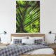 The tropical green artwork on this Stretched Canvas Print is an original photograph by ZoeSPEAK of a royal palm frond enjoying the sunlight. Some pine needles have landed on the frond, adding to the curves of the image, with oddly shaped shadows from the branches and vines above.