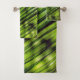 The tropical green image on this Towel Set is an original photograph of a royal palm frond enjoying the sunlight. Some pine needles have landed on the frond, adding to the curves of the image, with oddly shaped shadows from the branches and vines above.