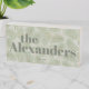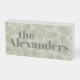 Pale green palm fronds accented with gold top this wooden box sign customized with your family name. Great addition to your home fireplace mantle or give as a gift for new home or newlyweds. Change the fonts and font colors to anything!