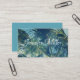 Add your personal contract information to create your own business cards great for a travel blogger or digital nomad. The photo features photo of palm fronds blowing in the breeze. Dominant colors are muted blues and greens. Photo business card. Travel business.