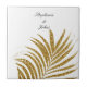 Palm Leaf Gold Glitter Custom Name Wedding Gift Ceramic Tile