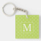 This nautical monogrammed keychain features crisp white preppy anchors on a background of bright Palm Leaf Green. Personalize the monogram with your choice of initial on the front and contact information on the back.