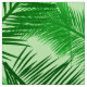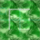 Fabric in a print of overlapping palm leaf silhouettes, in shades of deep emerald green, leaf green, and lime green, against a pastel lime green background