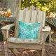 Palm Leaf Print, Turquoise, Teal and Light Aqua Throw Pillow