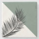 Nordic style minimal design with black palm leaf decoration and white and green triangles