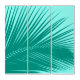 Triptych of a Tropical palm leaf silhouette in turquoise / peacock against a light aquamarine background