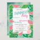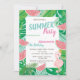 Palm Leaf Watermelon Pink Flamingo Birthday Party Invitation
