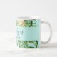 Watercolor Greenery Palm Leaves Gold Tropical on Teal Script Business Card Mug with customized handwritten elegant script lettered typography signature for the name. Personalize with your name and occupation or business name.