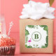 This design features a green palm leaves background with a monogram in the center. Add your own initial to this product to customize it.