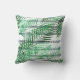 Palm leaves on a striped black and white backgroun throw pillow