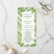 The design features trendy tropical green palm leaves on a simple clean white background with a coordinated border and wording.