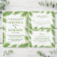 The design features trendy tropical green palm leaves on a simple clean white background with a coordinated border and wording.
