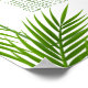 The design features trendy tropical green palm leaves on a simple clean white background with a coordinated border and wording.