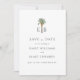 This simple and elegant tropical wedding save the date invitation exudes refined Palm Beach style with a modern, minimalist sensibility. A custom royal palm tree monogram anchors the design, featuring the bride and groom’s initials gracefully placed on either side of the palm for a look that feels both personal and polished. Clean typography and airy spacing with a crisp white background creates an upscale aesthetic that blends tropical style with contemporary sophistication. Perfect for a coastal or destination celebration, this Save the Date card has a photo template on the back for including an engagement photo or other selected photo of the future bride and groom.