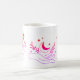 A celestial ceramic mug adorned with dreamy line-art hands cradling moonlit magic. Sunset gradients in pink and orange dance across a white surface, inviting your morning ritual into a realm of calm and creativity.