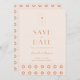 Plain white envelopes are included with paper invitations and will come to fit the invitation size you select. If you don’t need the envelopes, you may choose to not receive them by selecting the dropdown below "Envelopes" and choosing "None." If you’d like to have a design on your envelopes, you can browse all of these available envelopes to find the design that complements your Palm Spring Retro Wedding Save The Date Invitation.