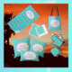 This Palm Springs Turquoise Blue cloth tablecloth with pastel palm trees is so much fun! Playful multicolor soft watercolor hues have a real beach island vibe, even if you're not near the ocean. Midcentury modern style.
