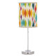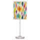 Inspired by Palm Springs Midcentury Modern design this pattern features diamond shapes in rich warm colors of teal blue, lime green, orange, sunny yellow, pink, magenta and purple set against a light cream colored background. Show off your retro side with this lamp and its riot of color.