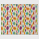 Inspired by Palm Springs Midcentury Modern design this pattern features diamond shapes in rich warm colors of teal blue, lime green, orange, sunny yellow, pink, magenta and purple set against a light cream colored background. Show off your retro side with this wrapping paper and its riot of color.