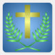 Square Easter sticker with Palm Sunday golden cross and palm design.