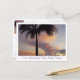PALM TREE BACKED BY A GORGEOUS SUNSET IN PROVIDENCIALES. TURKS AND CAICOS ISLANDS. TEXT ON FRONT AND BACK CUSTOMIZABLE. SHOWN TEXT READS: "I'VE ADOPTED THIS PALM TREE" (FRONT). REVERSE SIDE: "I PROBABLY SHOULD NOW STAY TO CARE FOR IT. LOVE, "ME" , TURKS AND CAICOS". A LITTLE HUMOR FOR THE FOLKS LEFT BEHIND BACK HOME.