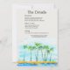 Capture the essence of a dreamy destination wedding with this invitation featuring colorful palm trees, a sandy beach and ocean waves, and aqua blue skies. The black text elegantly contrasts against a soft cream background, adding to the overall charm of this piece. It's the perfect way to set the tone for your marriage celebration!