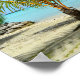 Poster print of a palm tree on sand beach of a luxury overwater thatched roof honeymoon resort on the tropical island Bora Bora, near Tahiti in the pacific archipelago French Polynesia. Great decoration on your wall!