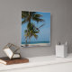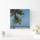 Palm tree and white sand beach square wall clock
