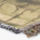 A quality printed throw has its advantages. This is a much finer weave throw than its loopier cousins, and though lighter, it is worth the investment for custom room accessorizing. The back is much prettier than the typical brown, and the fringe on the long sides very vivid, the selvage nicely done. Before photographing, I washed the throw in cold water, delicate, with a thicker woven throw the same size. On tumble dry low, this throw was dry in half the time as the other. This is a very practical quality if you use throws for furniture covers or to wrap up in frequently. The sleekness of the fabric makes it a great layer for accenting or protecting without the feeling of sitting on too much stuff. Perfect for napping or when you feel a light chill coming on. The color printing is beautiful and on this fabric, matched the design and color of my Photoshop image. This is an advantage for blending room fabrics and colors. The fringe on the short sides prints the colors from the design image and therefore varies from the side fringe. I streaked a white fractal line through the plaid pattern to give the illusion of weaving. This printed as crisp as an illusory thread, and put some white in the short side fringe, showing another advantage of print vs loomed- for artistic purposes, line lines, detail, and color integrity can be planned and preserved. My loomed throws have color limitations and more of a needlepoint texture. Print throws reproduce an exact image. The throw felt a little stiff straight out of the package, but this went away in the first delicate wash. Of course I searched the wash water for ink or bleeding and there was none.