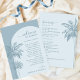 Palm Tree Beach Dusty Blue Wedding Itinerary Card