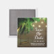 Palm Tree Beach Lights Save the Date Magnets - Designs feature string lights and palm trees over a dusk background with elegant fonts with a swing hanging down. See the full matching collection in this design below.