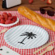 Enjoy our nautical palm tree painting blue stripe palm tree paper plates for any party.