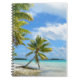 Notebook with hanging palm tree on a white sand beach of a tropical island in the Pacific Ocean belonging to the Tahiti archipelago French Polynesia.