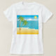 A scenic view of a palm tree beach with a bright sun. This design looks really effective on this Womens T-Shirt