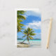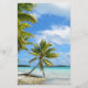 Stationery with a hanging palm tree on a white sand beach of a tropical island in the Pacific Ocean belonging to the Tahiti archipelago French Polynesia.