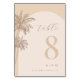 Palm Tree Beige Script Monogram Beach Wedding Table Number
